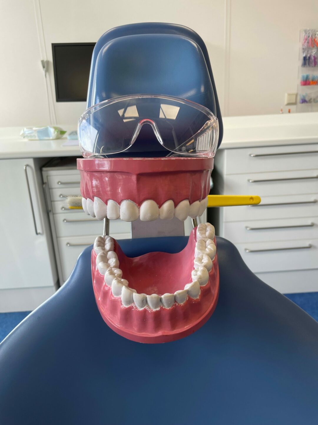 Vandaag bezochten 5 leerlingen van het Veenlanden College en Vakcollege Thamen onze praktijk vanwege de Doe Dag in de regio. Veel bedrijven stellen deze dag hun bedrijven open voor een korte kennismakings-stage voor leerlingen van het 2e/3e leerjaar van deze middelbare scholen zodat ze gerichter een beroepskeuze kunnen maken. Na ontvangst, uitleg over ons beroep en een rondleiding door de praktijk was Meneer X er helemaal klaar voor. Geduldig onderging hij de gebitsreinigingen met de diverse instrumenten/apparatuur die we daarvoor hebben. Zo schoon was zijn gebit nog nooit geweest….. Daarnaast hebben de leerlingen uitgerekend hoeveel suikerklontjes in diverse frisdranken zitten. Het was een hele leuke dag!