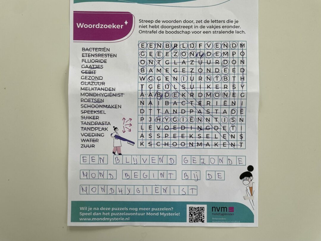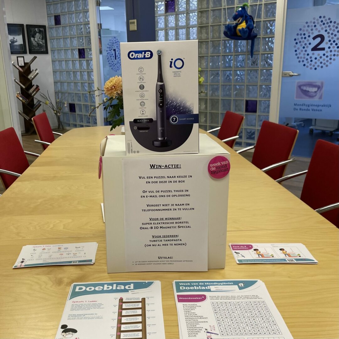 De winnares van onze puzzelprijsvraag tijdens De Week van de Mondhygiënist is bekend. Gosia Hakker had de woordzoeker goed ingevuld en daarbij het geluk dat haar formulier uit de 71 inzendingen getrokken werd. Gosia ontving de mooie elektrische tandenborstel uit handen van onze collega Agnes. Alle deelnemers bedankt voor het meedoen en Gosia; veel poetsplezier!