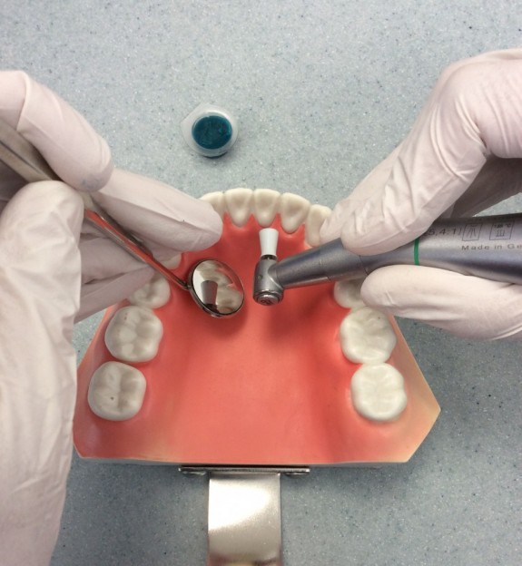 Na gebruik van de voorgaande technieken zullen wij bijna altijd polijsten. Dit doen we om de gebitsoppervlakken zo glad mogelijk te maken en de laatste aanslag te verwijderen. Wij gebruiken hiervoor een handstuk met een ronddraaiend rubber cupje of borsteltje. De polijstpasta die we gebruiken kan variëren in grofheid (korrelgrote), smaak of speciale toepassing (bijvoorbeeld in het geval van gevoelige tandhalzen)
